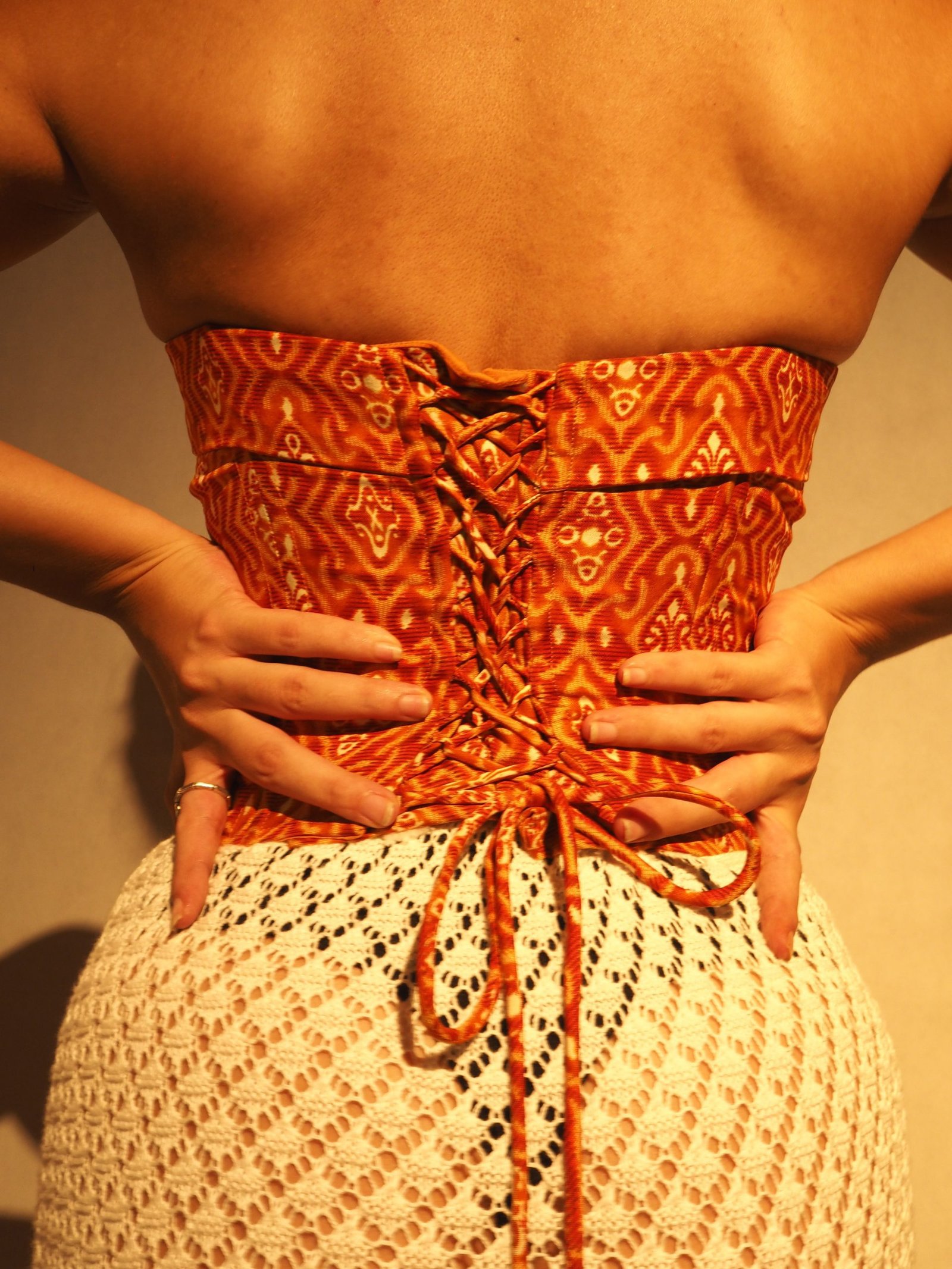This size guide is only valid for the kebaya corsets and gringsing corset. For the batik collection, sizes available are only S/M and M/L