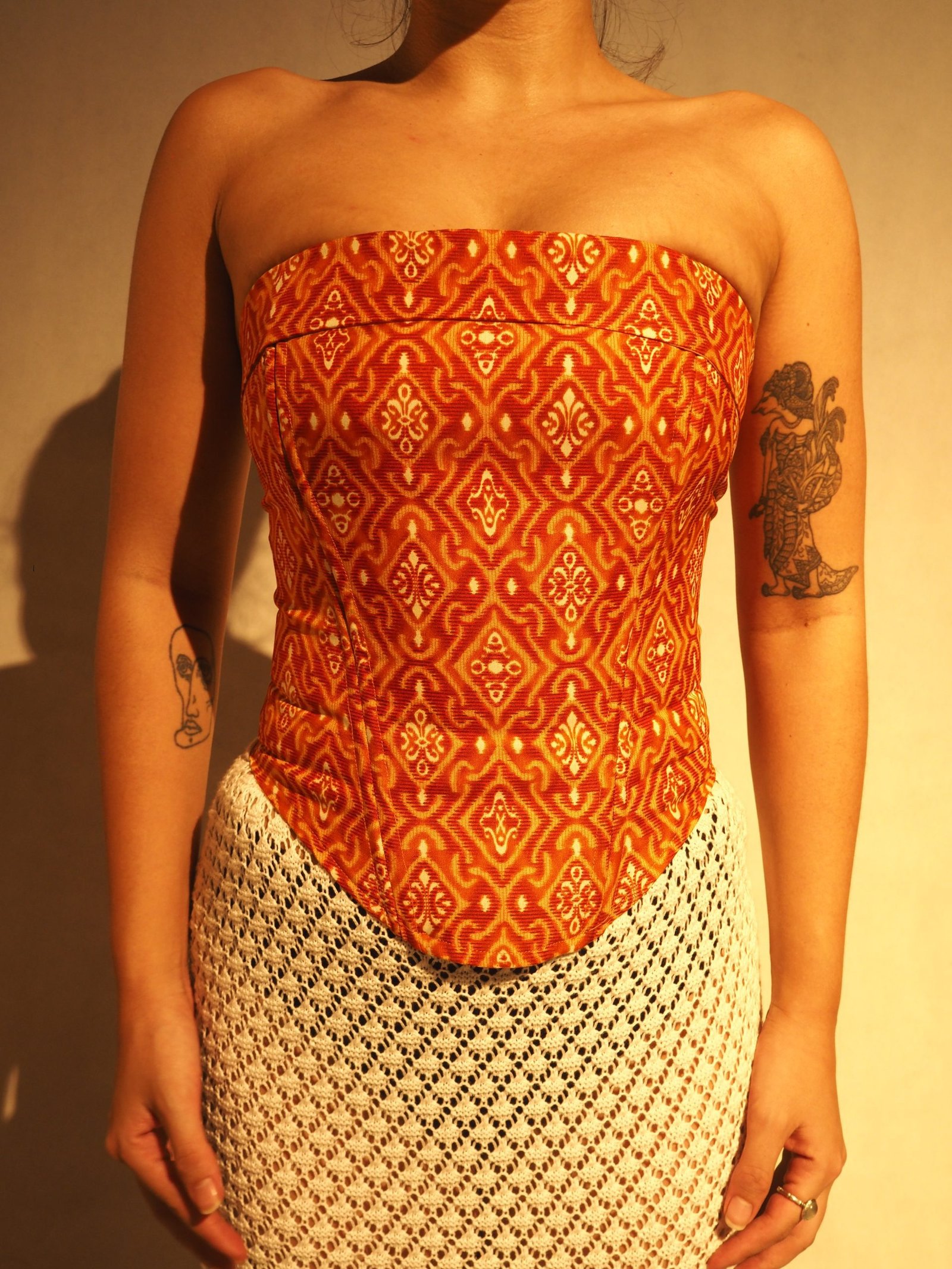 Our mission is to help nurture the Indonesian fashion scene to embody its rich history and to assist its integration into the contemporary. We believe it is our responsibility to educate and spread awareness of the complex histories that come with the fabrics we chose to make our corsets with.